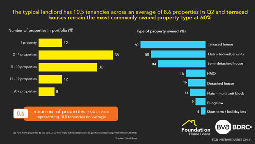 Breaking this down, the typical landlord is said to have 10.5 tenancies across an average of 8.6 properties in Q2. This represents a 2.1 property increase in the average portfolio size and is likely to be a result of an increasing number of single property landlords exiting the market.